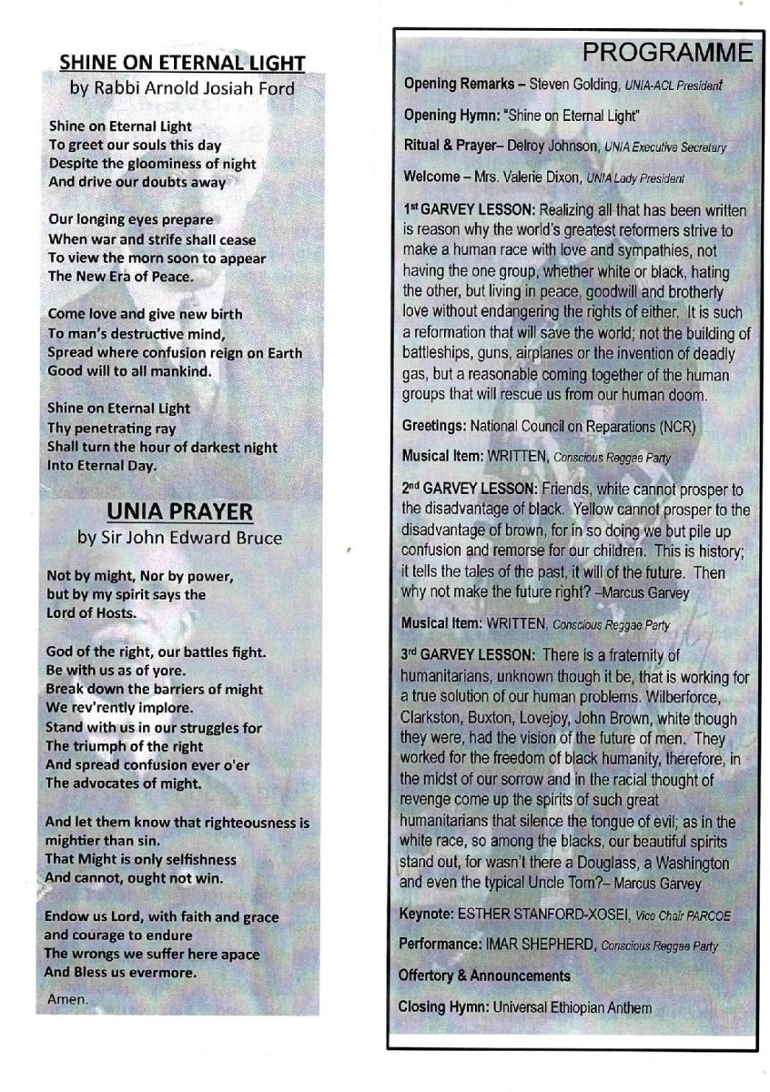 UNIA PROGRAMME 2 (2) Published July 3, 2019 at 1120 × 1589 in PARCOE Promotes the Reparatory Justice Work of the ‘Stop The Maangamizi!’Campaign in Jamaica ← Previous Next →