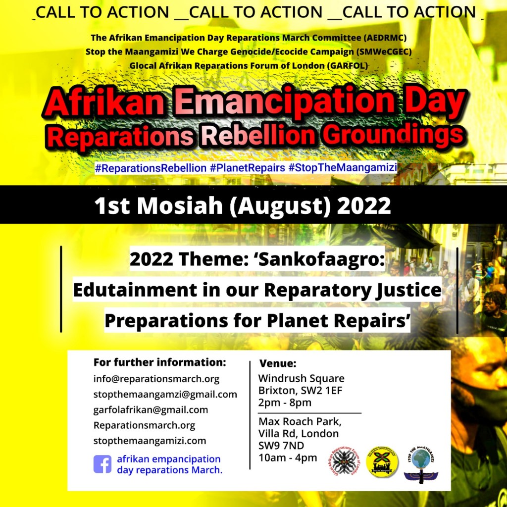 Updates from Afrikan Emancipation Day Reparations March Committee (AEDRMC), the Stop the Maangamizi Campaign (SMWeCGEC) and the Glocal Afrikan Reparations Forum of London (GARFOL)
