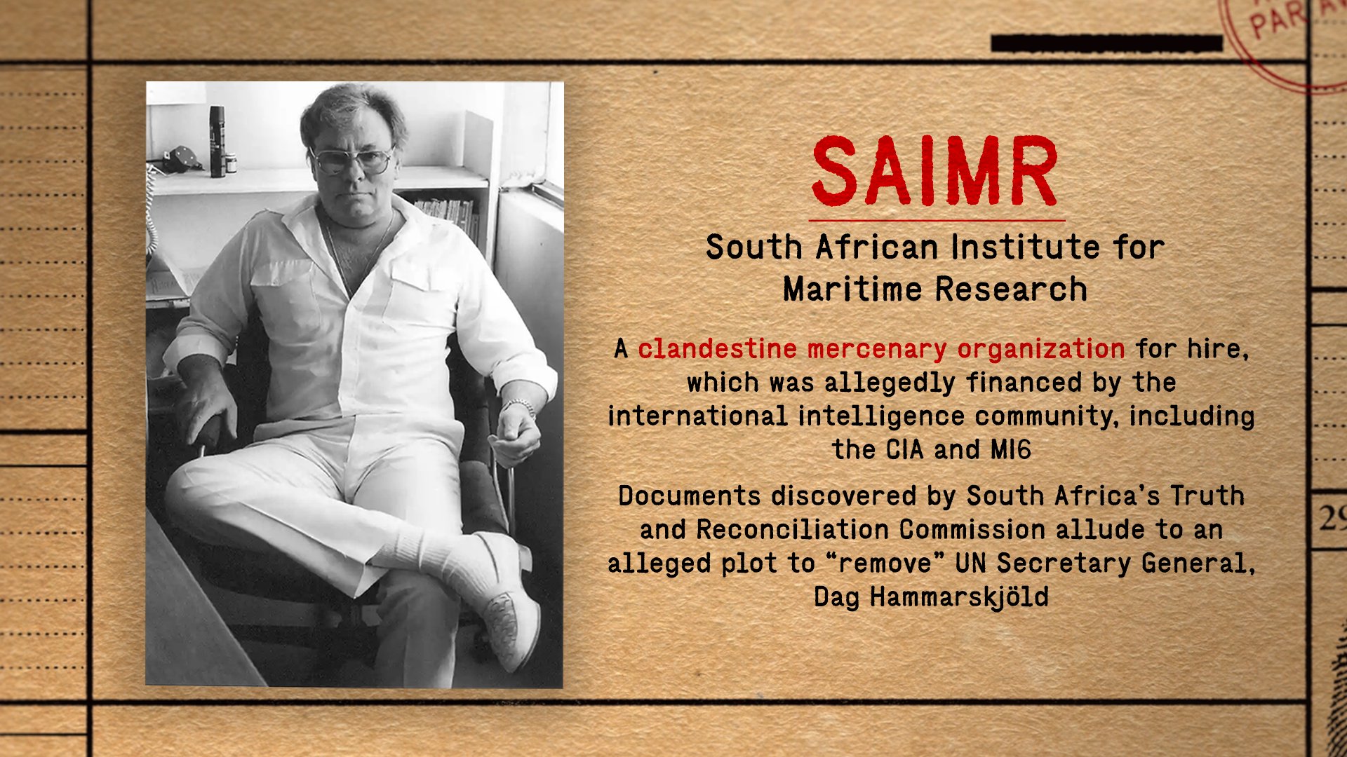 Ex-mercenary confesses to Infecting Afrikans with HIV-AIDs – scene from documentary Cold Case Hammarskjöld, a 2019 documentary film by Danish film- maker Mads Brügger