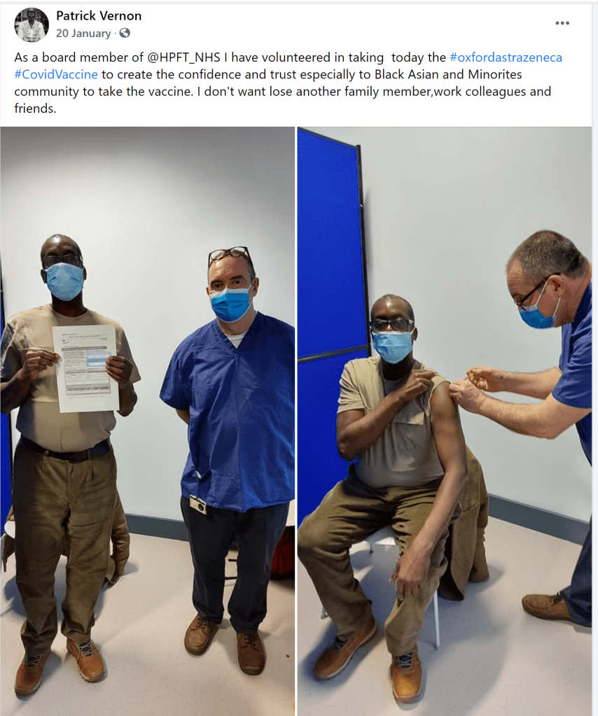 Facebook post of Dr Patrick Vernon OBE on 20 Jan 2021