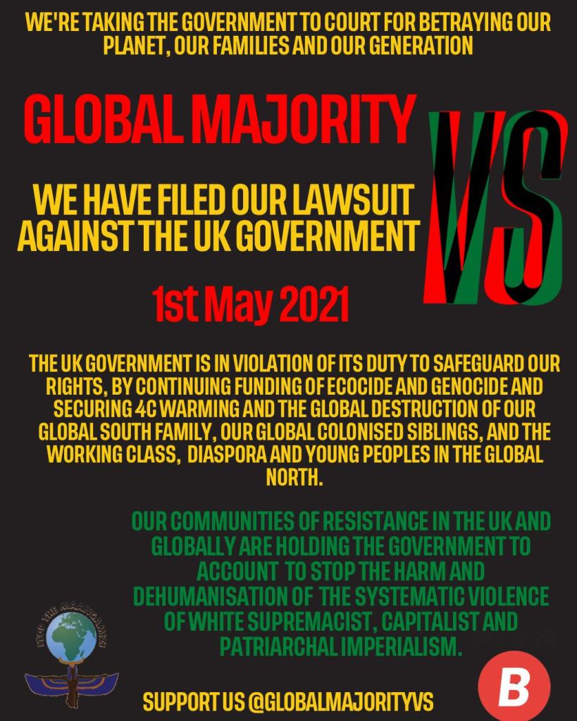 Despite the fact that the courts are becoming a critical site of resistance against climate breakdown and ecocide, we in the SMWeCGEC believe that it is equally important to wage this fight for governmental accountability in the international courtroom of public opinion. Upon hearing about this case and campaign, the natural question is, so what has this case got to do with me and what can I do to assist the progress of the campaign? The simple answer is, become an International Court of Opinion Advocate for the Global Majority Vs UK Government campaign, this simply means studying particularly, the extra-legal work on the case, engaging in law as resistance action-learning with the support of the Maangamizi Educational Trust and encouraging others to do the same.