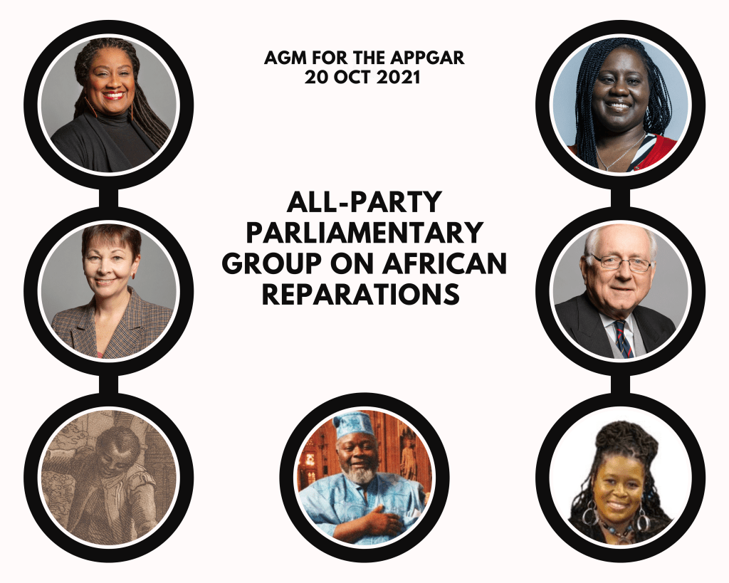 Today we in the Stop The Maangamizi Campaign and our educational arm the Maangamizi Educational Trustwere participating stakeholders to the historic establishment of the All-Party Parliamentary Group on African Reparations (APPGAR) which was launched in the British Houses of Parliament (via an online AGM) at 10.30am this morning, Wednesday 20th October 2021. The APPGAR is chaired by Bell Ribeiro-AddyMP, the Vice Chairs are Marsha De Cordova MP and Caroline Lucus MP, the Assistant Secretary is Sir Peter Bottomley.