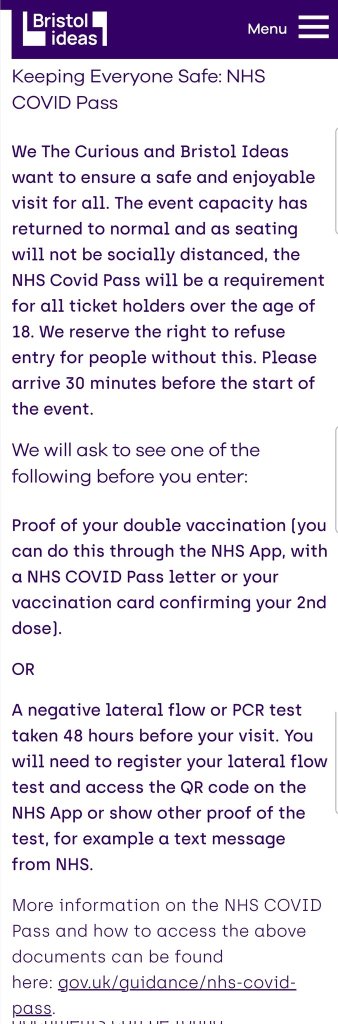 Concerns have also been raised about the data protection implications, for Afrikan Heritage Communities, of the Festival of Economics admission policy in terms of individual community members COVID-19 status being ‘special category’ data, and a lack of assurances that use of it will be “fair, relevant and necessary for a specific purpose”. Furthermore, questions have also been raised as to whether We The Curious and Bristol Ideas have undertaken a data protection impact assessment which takes into consideration the potential disproportionate and high risks of the admissions policy to individuals from Afrikan Heritage Communities on the basis of data known thus far about the disproportionate impacts of COVID-19, the human rights dimensions of imposing the NHS Covid Pass as a requirement for admission as well as how COVID-19 discrimination manifests.